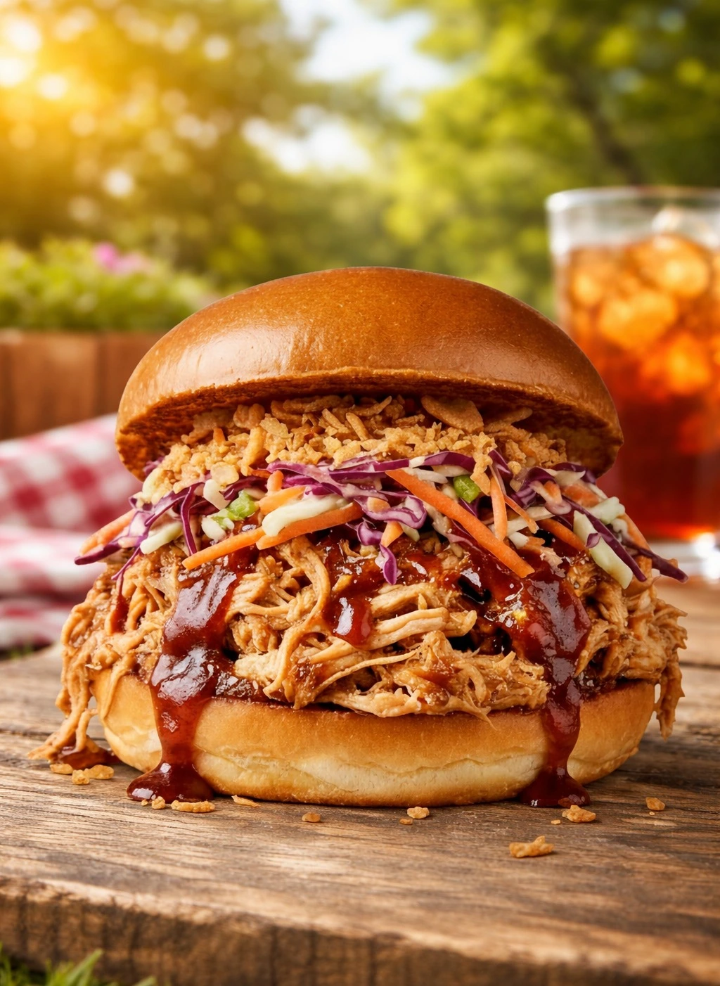 - Slowly grilled and pulled chicken, marinated